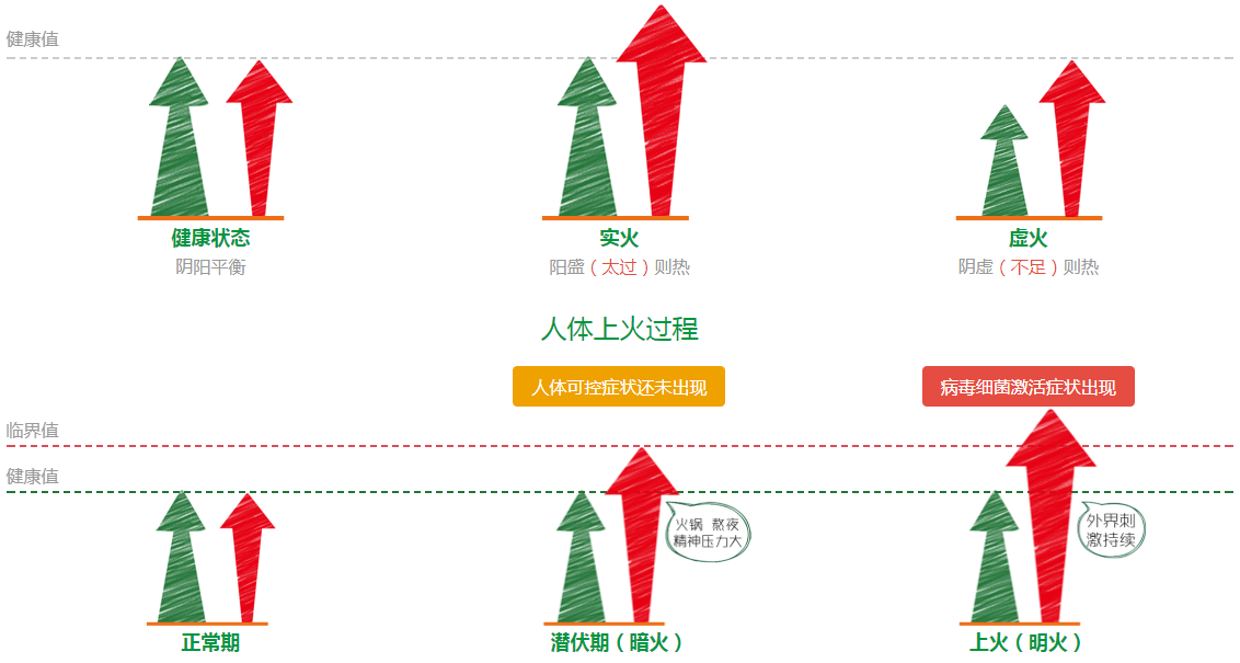 多由于火熱之邪內侵或嗜食辛辣所致,而精神過度刺激、臟腑功能活動失調亦可引起實火內盛。